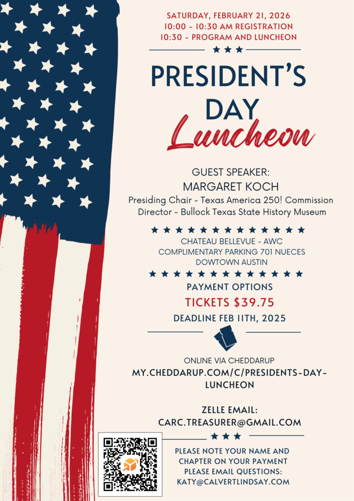 Below are a list of the upcoming events for the Patrick Henry Chapter.